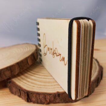 Drevený mini diár s menom je vyrezávaný zo 4 mm hrubej preglejky.