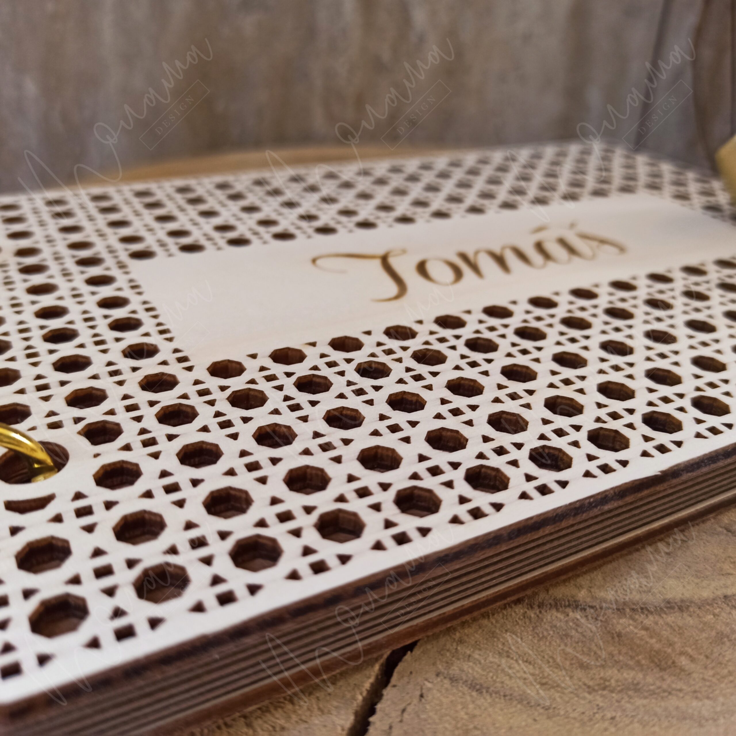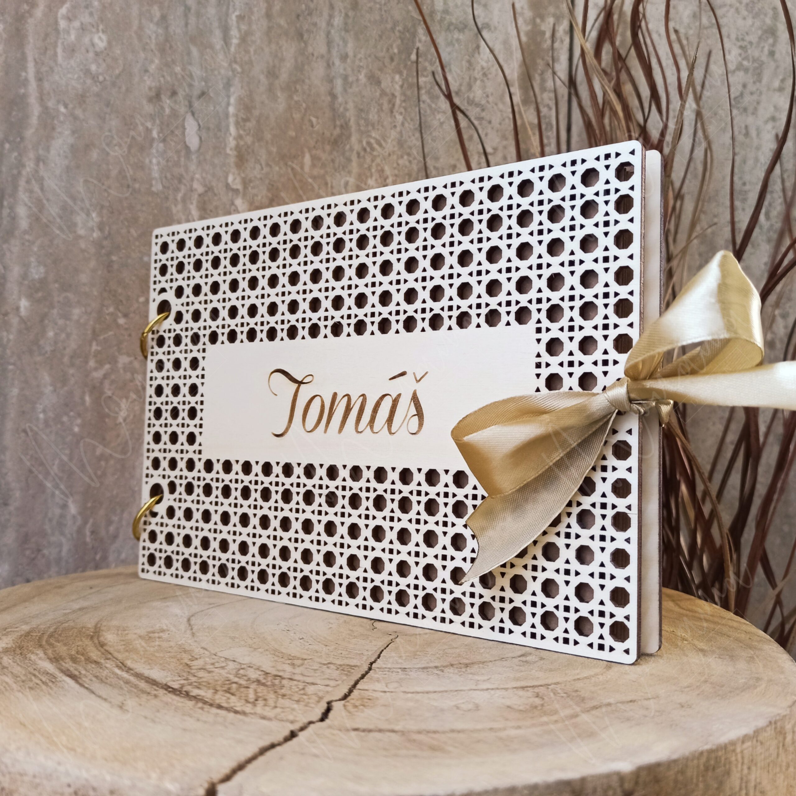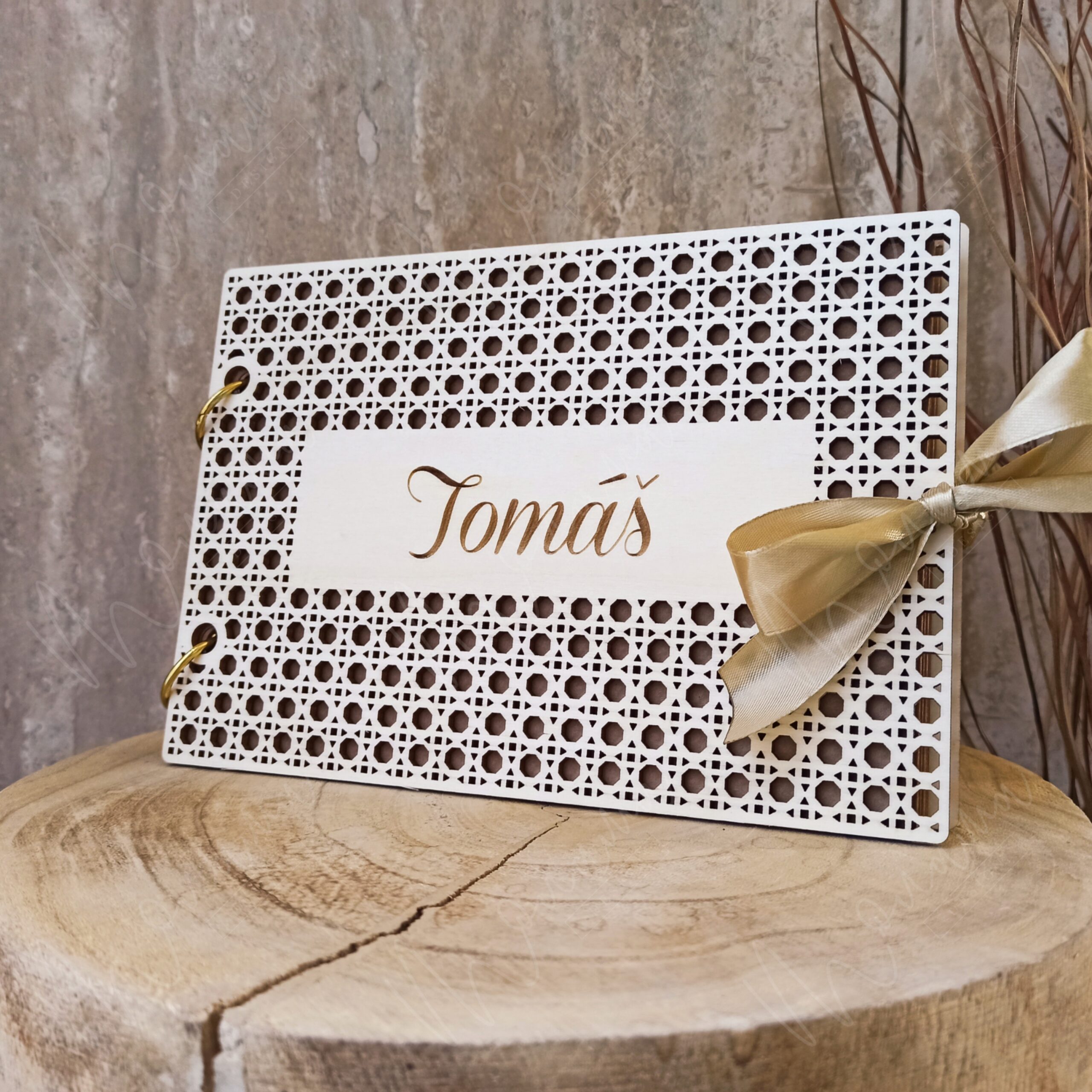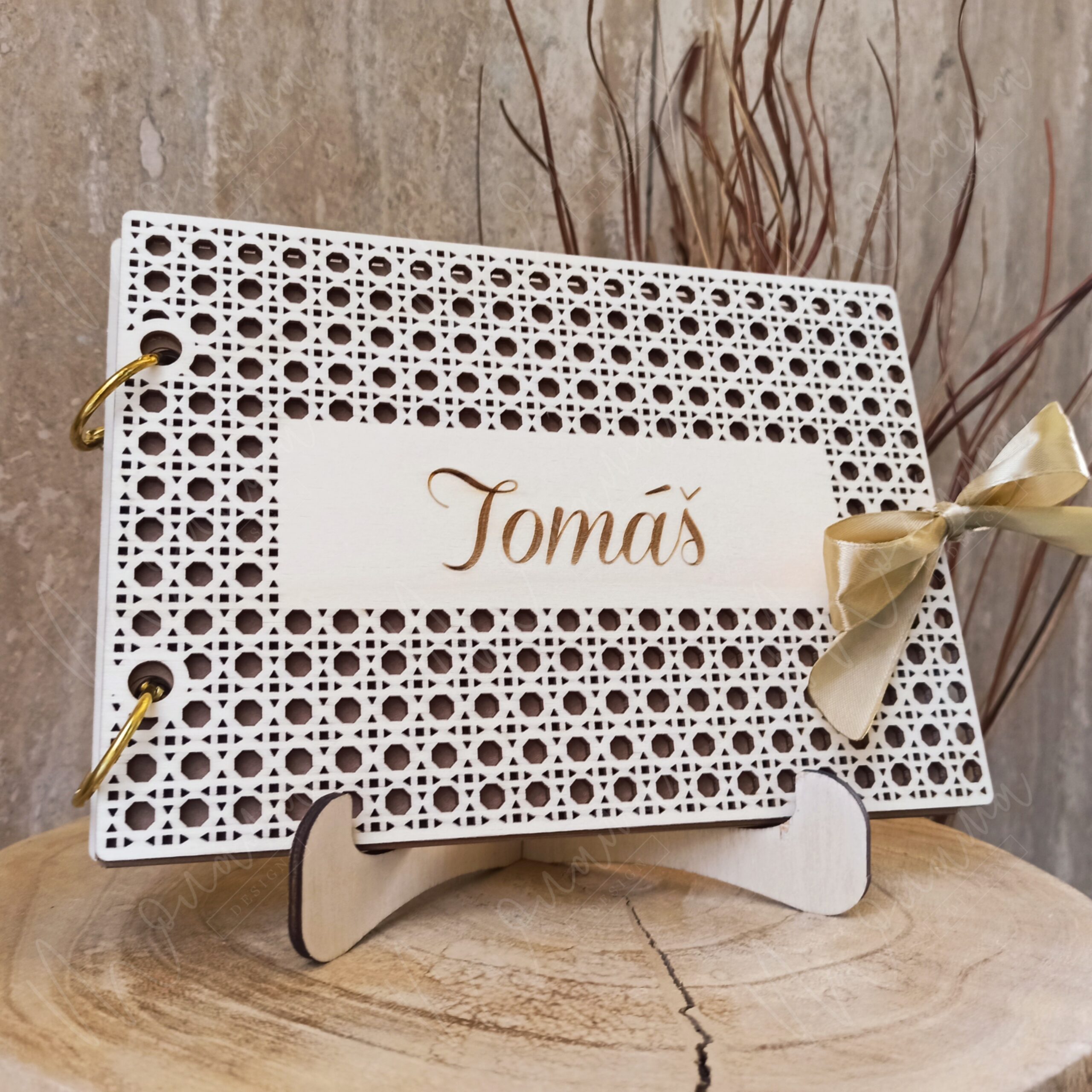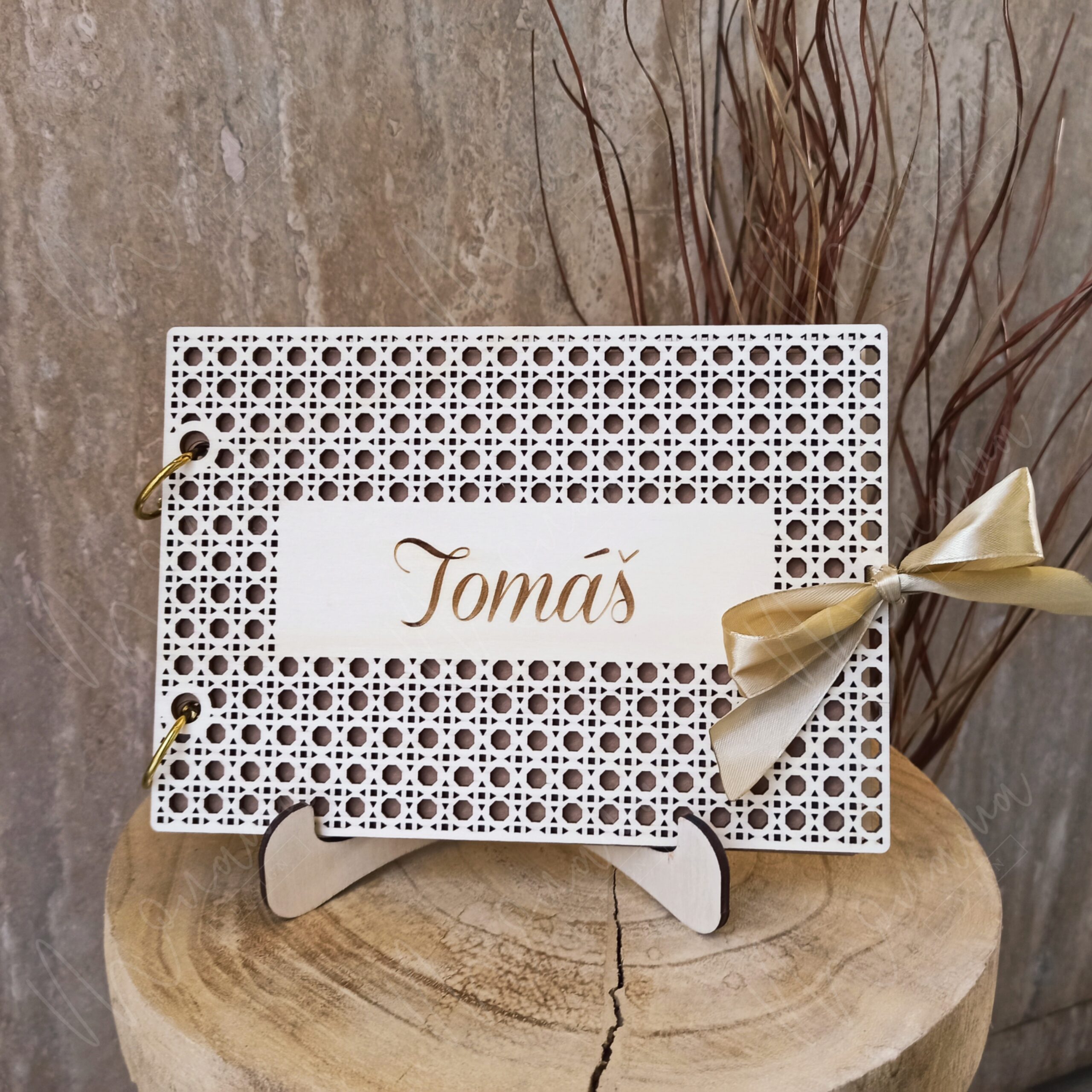 Drevený fotoalbum s menom je vyrezávaný zo 4 mm hrubej preglejky.