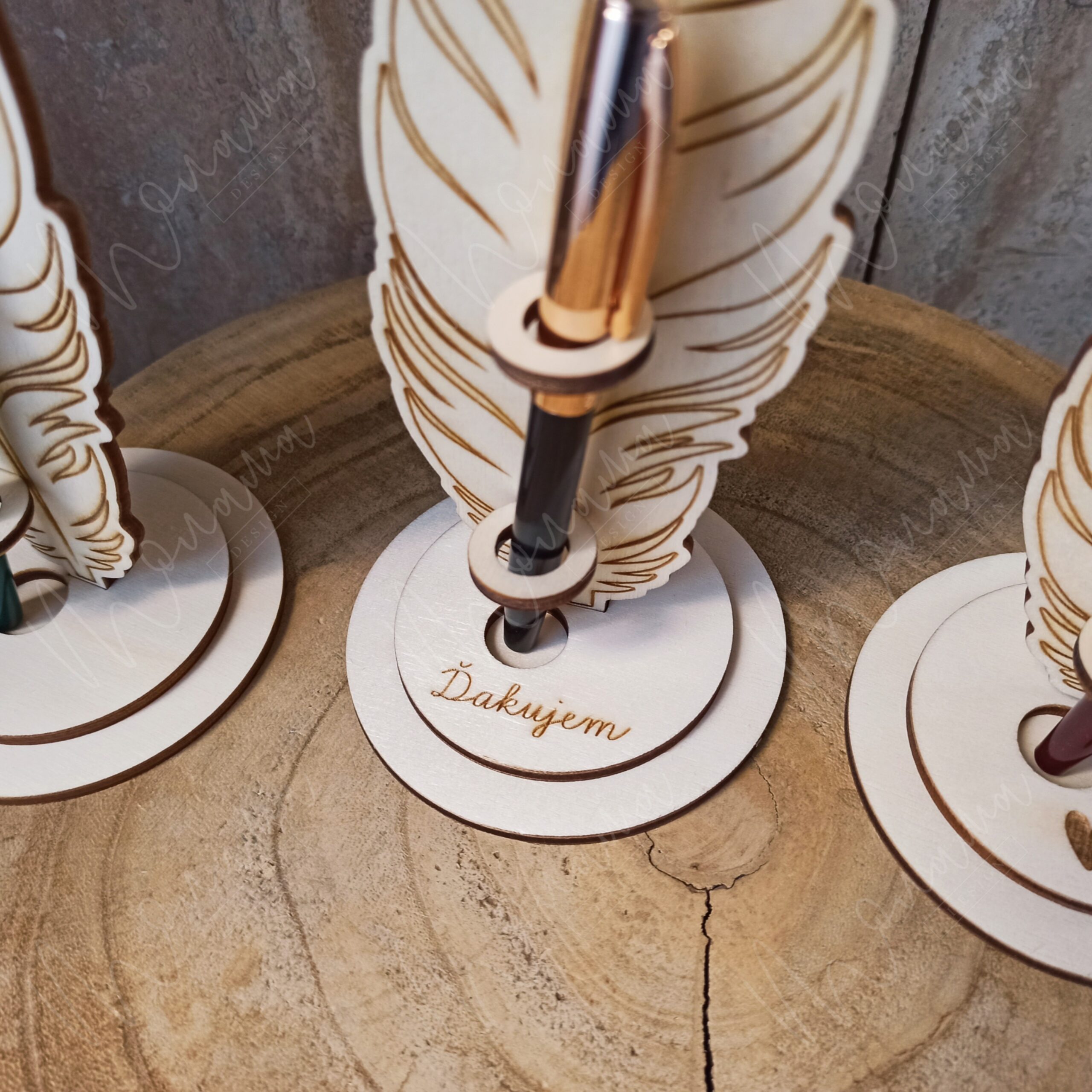 Stojan na pero je vyrezávané laserom. Text je gravírovaný.