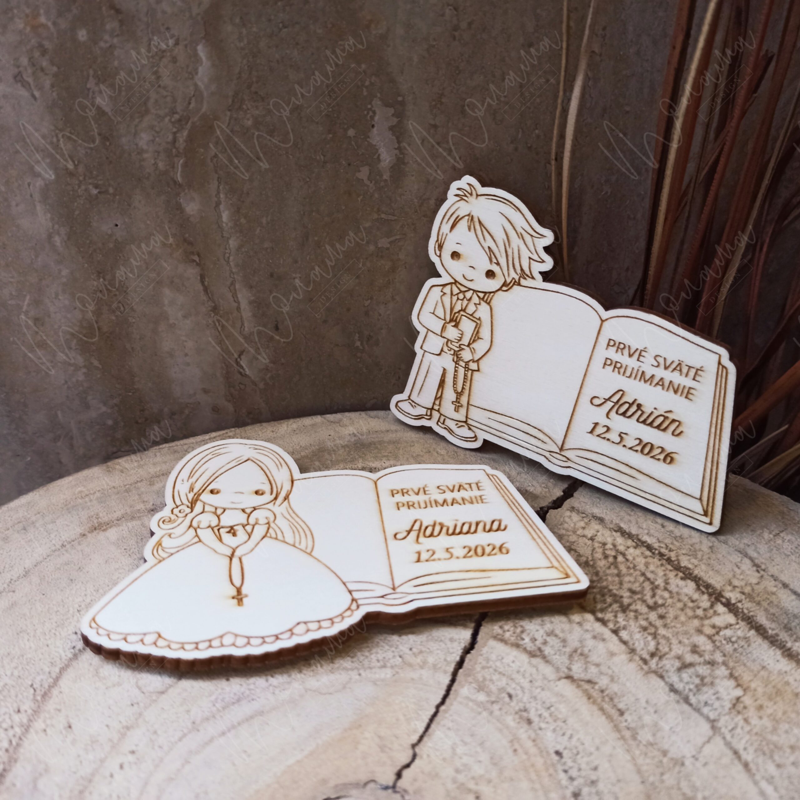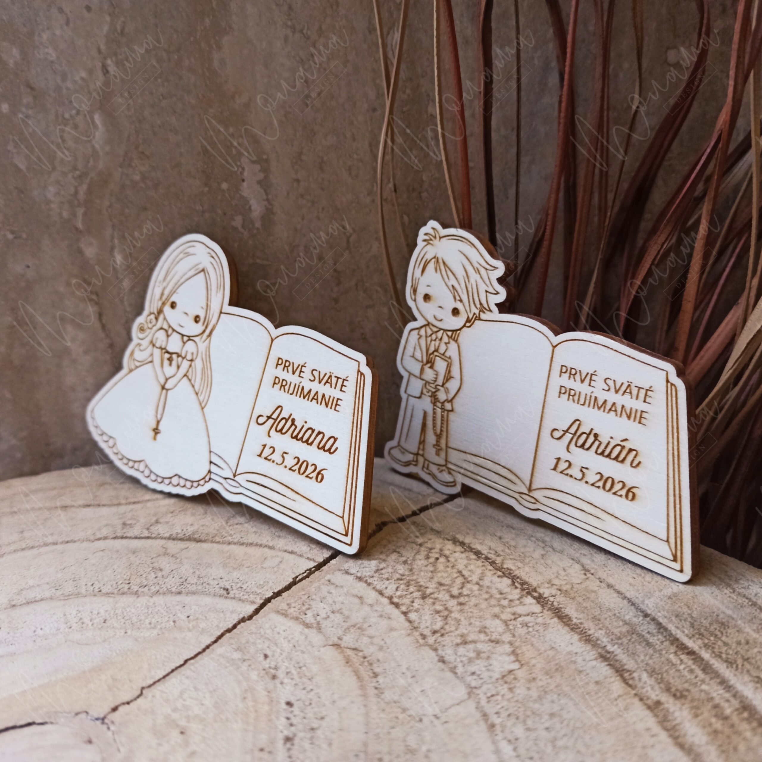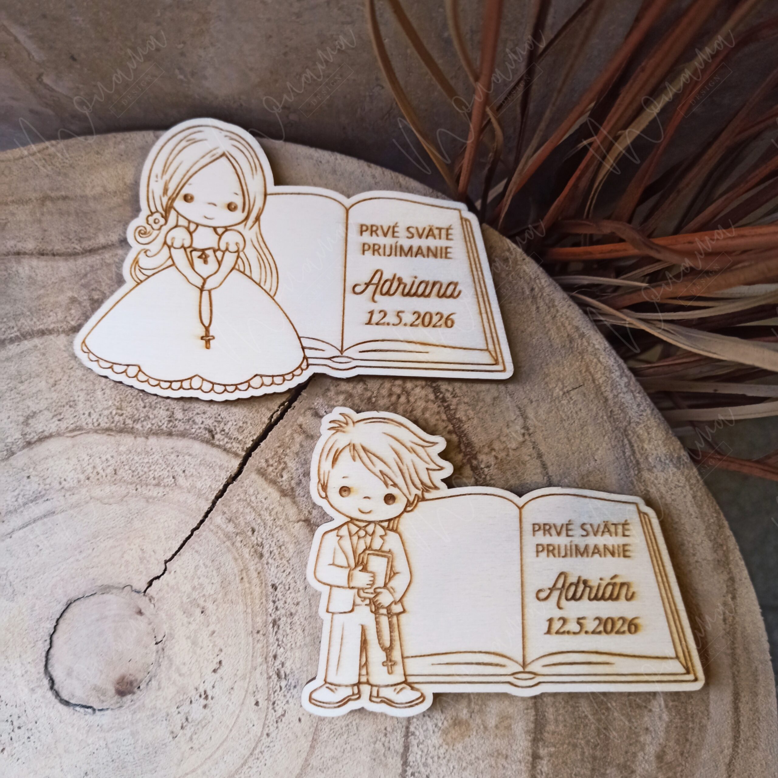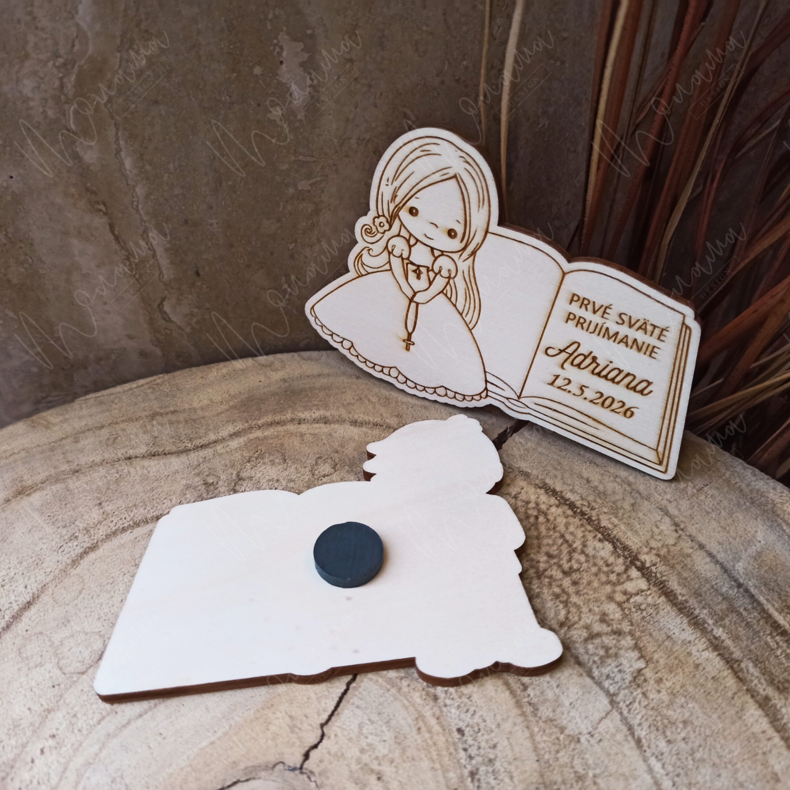 Drevená magnetka Prvé sväté prijímanie je milá personalizovaná pamiatka s menom a dátumom. Skvelá ako darček pre hostí, krstných či rodinu – na chladničke bude pripomínať tento výnimočný deň.
