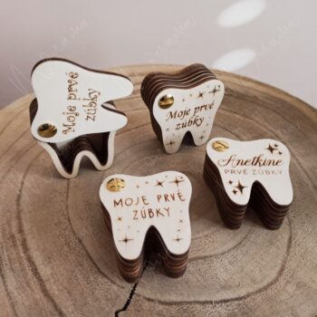 Krabička na zúbky je vyrezávaná laserom. Text je gravírovaný.