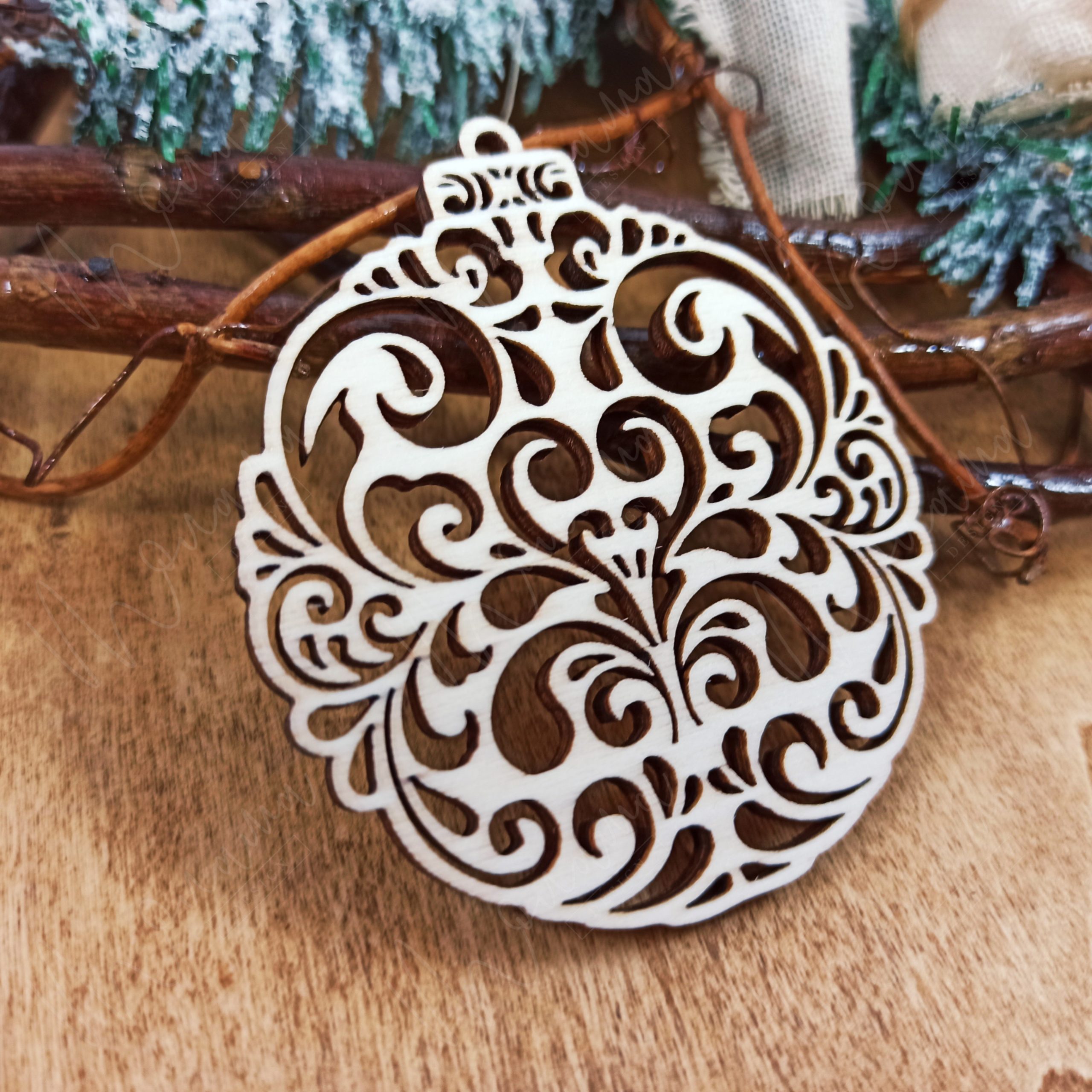Vianočný výrez na vianočný stromček v tvare vianočnej gule.