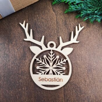 Vianočná ozdoba s Vašim menom v tvare vianočnej gule s parožím. Čoraz viac obľúbenejšia vianočná ozdoba vášho vianočného stromčeka.