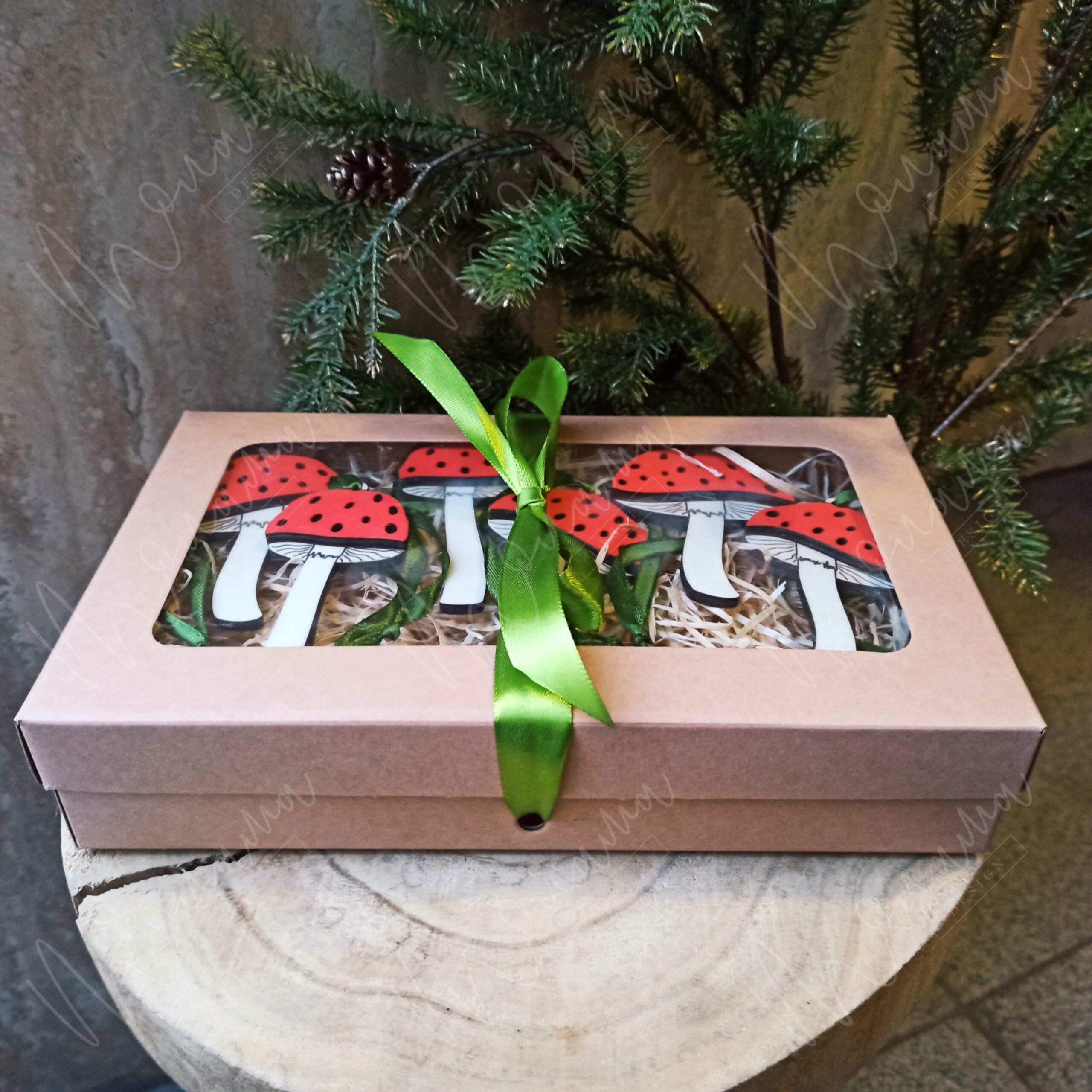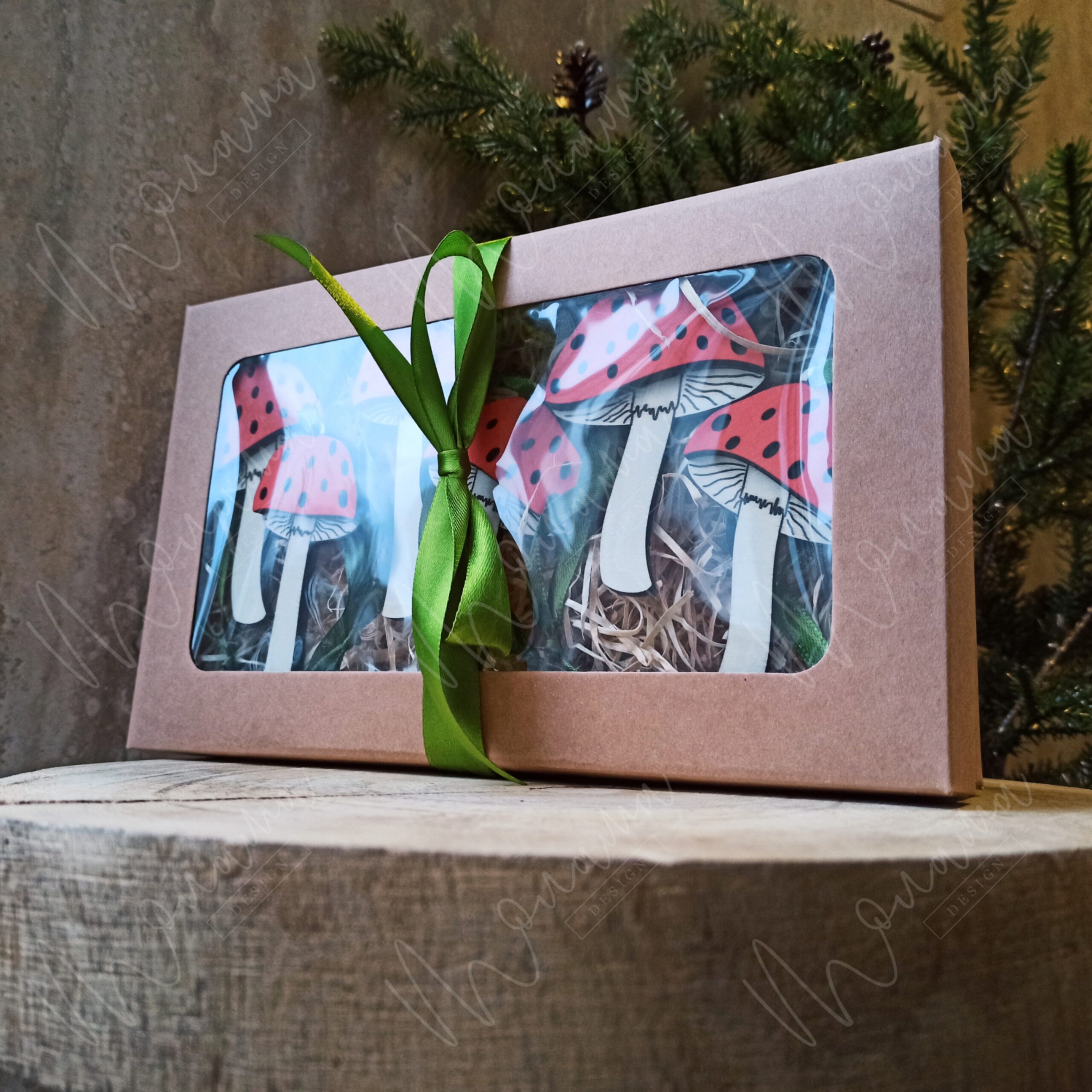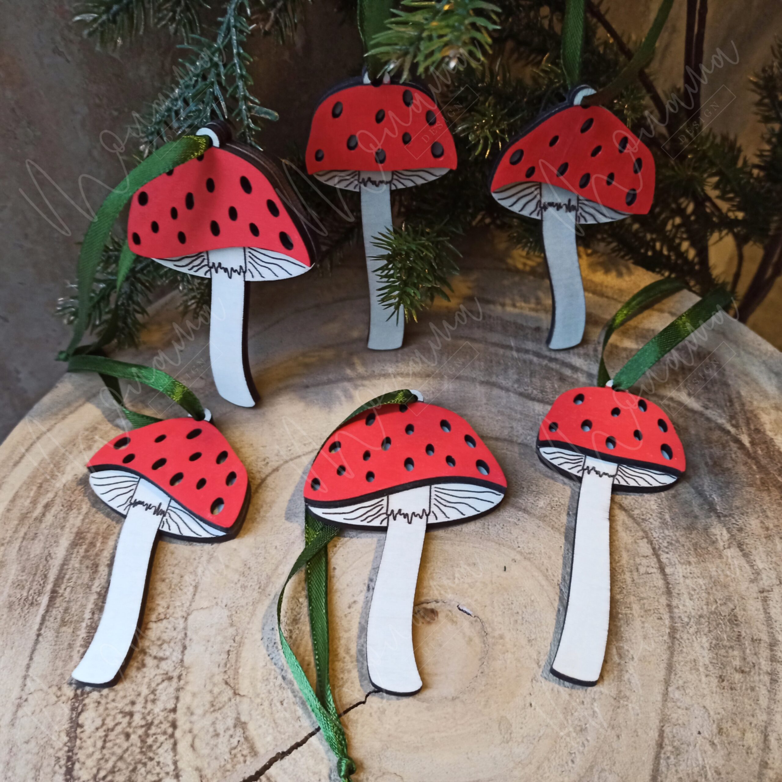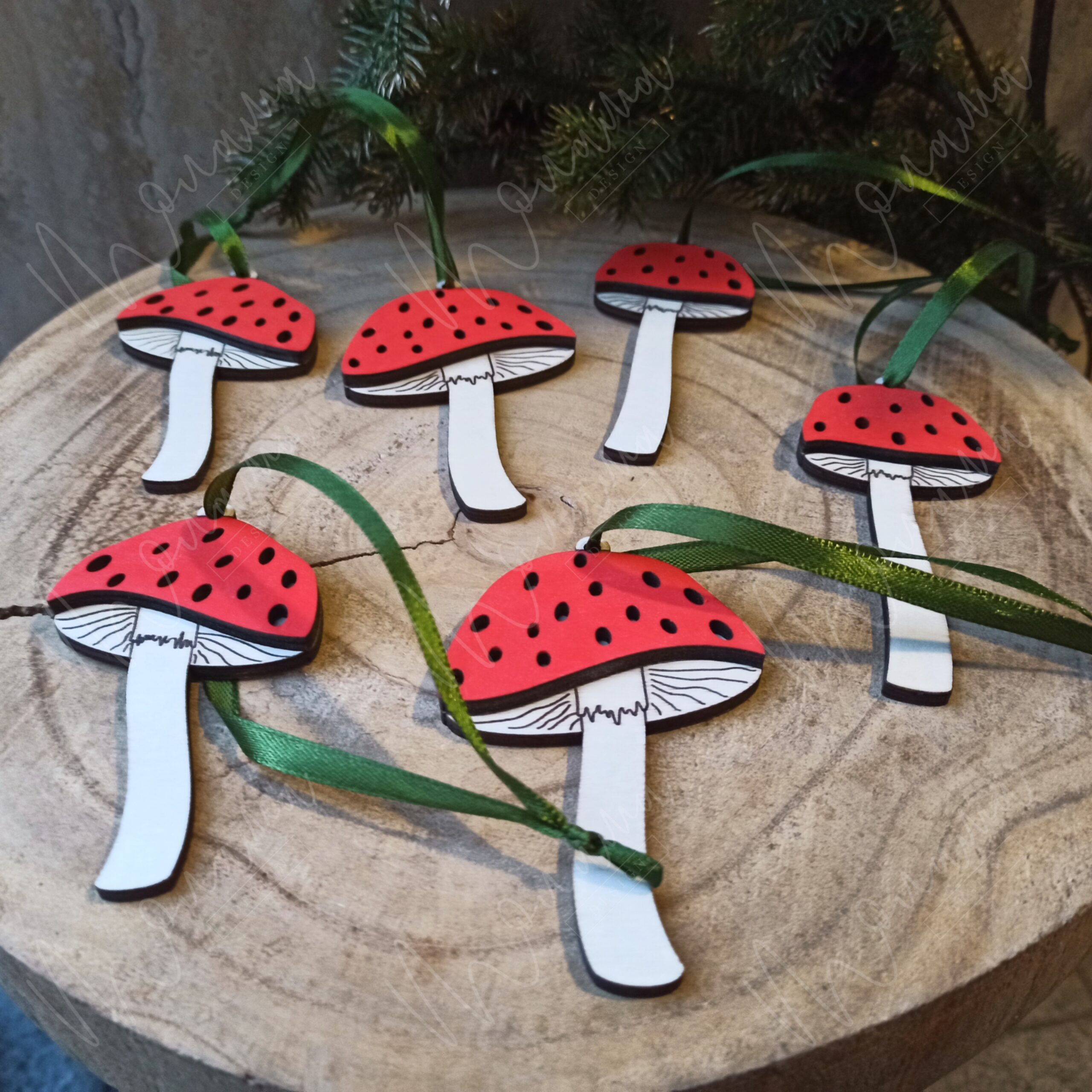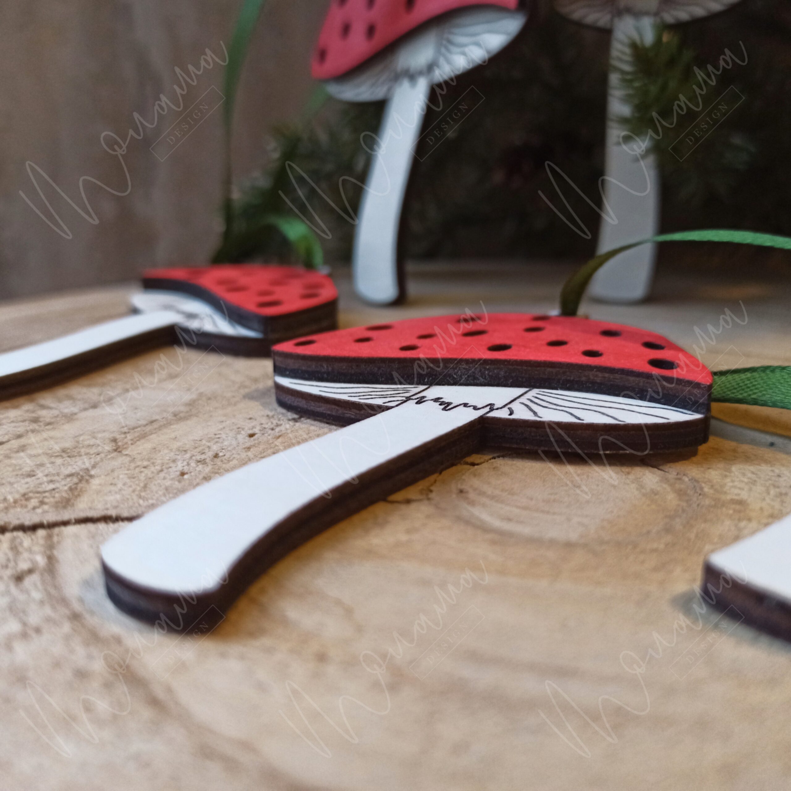 Vianočné drevené muchotrávky. Červená hlavička, biele bodky, drobná nožička – muchotrávka je huba, ktorú spozná aj dieťa z omaľovanky. Vianočné ozdoby ako symbol šťastia, nostalgie a rozprávkovej zimy. Muchotrávky prirodzene rastú pri koreňoch smrekov a jedlí – teda práve tých stromov, ktoré si nosíme domov ako vianočný stromček.